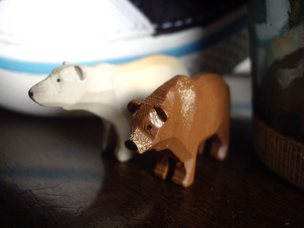 ↑Truckに行ったらひとつづつ増やしていくことにした小さな(ほんとに小さな)置物。今回は茶色のクマ。となりのシロクマは前回買ったもの。