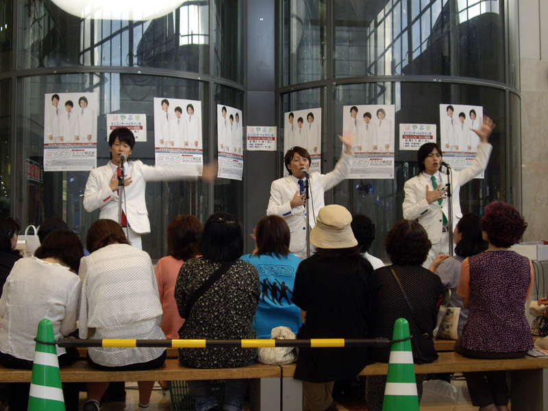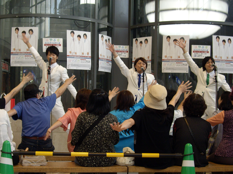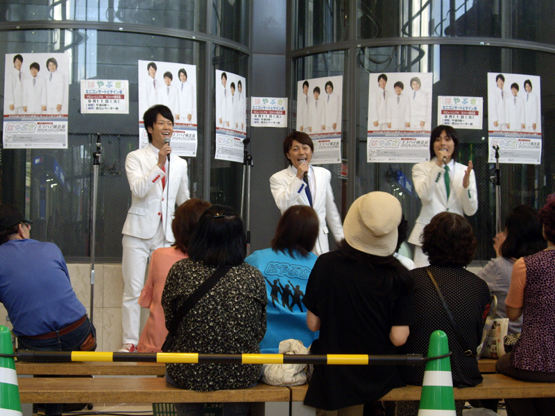 なんの因果か「はやぶさ」という若手ムード歌謡グループのミニライブを見に行ってきた。鳥羽一郎を筆頭にする大手事務所の期待の星。指先までピーンと伸ばした直立不動の立ち姿が泣ける。そうゆう真面目キャラを演じてる部分もありましょうが、それが不自然に感じないところが好印象。