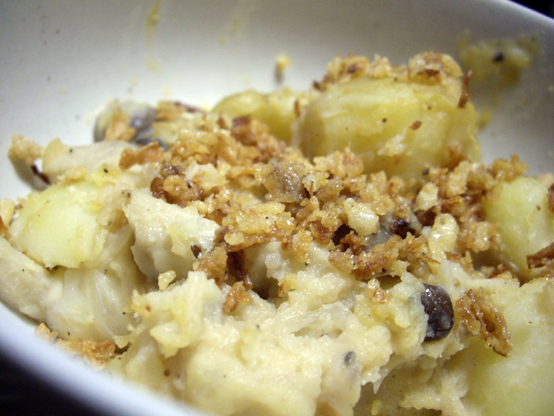 IKEAで買ったオニオンフライをポテサラにふりかけてみたら、グッドテイスト。エッジが立ってシャープになった。