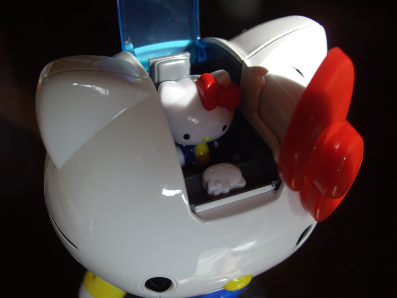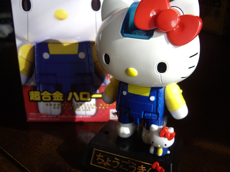 果てしない距離があるとおもわれた「キティちゃん」と「超合金」をドッキングさせてしまった偉業。頭は360度回転、上方向にも90度回転、両手両足稼働、キティちゃんの頭にキティちゃんがパイルダーオン!、ロケットパンチ装備!、さまざまなパーツ装着でいろんなカタチにトランスフォーム!、ボタンを押すと目の色がチェンジ!