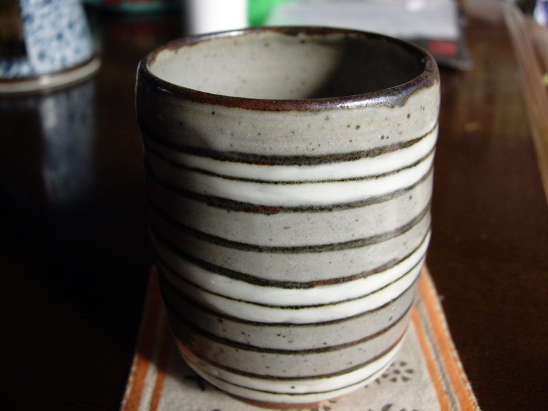 これはうちで使ってるなかで一番好きな湯呑み。かれこれ15年は使ってると思う。金沢旅行で見つけたもの。