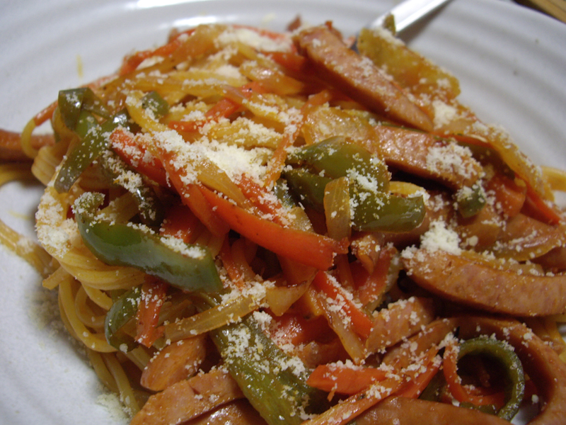ナポリタンなのに何でこんな話なのかというと、その影響を受けて、きょうの包丁さばきは我ながらハンパなく高速だったのだ。集中力集中力と念じて、ニンジン、玉ねぎ、ピーマン、ソーセージを次々に刻んでいった。新記録達成!のような爽快感。